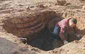 Der Spitzgraben war in der Baugrube deutlich erkennbar durch die Auffüllung mit eingeschwemmtem Lehm.