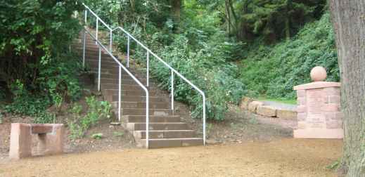 Eine zum Erholen geschaffene Anlage, ein kleiner Park, dessen Vorzug nicht zum Letzten darin liegt, dass er einen prächtigen Ausblick auf Maintal und Spessart bietet. Ruhebänke laden zum Verweilen ein. Aufrichtiger Dank der Obernburger, die von jeher Schönheitssinn bekundeten, würde sich derjenige erwerben, der die Beschriftung obigen Erinnerungssteins erneuern würde. Aus der erwähnten Veranlagung unserer Volksgenossen heraus darf man die berechtigte Hoffnung hegen, dass eines schönen Tages festzustellen ist: dieser Wunsch wurde erfüllt.