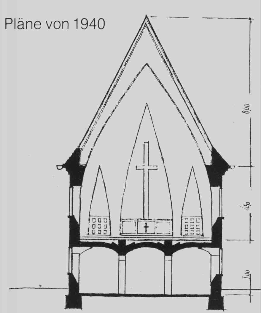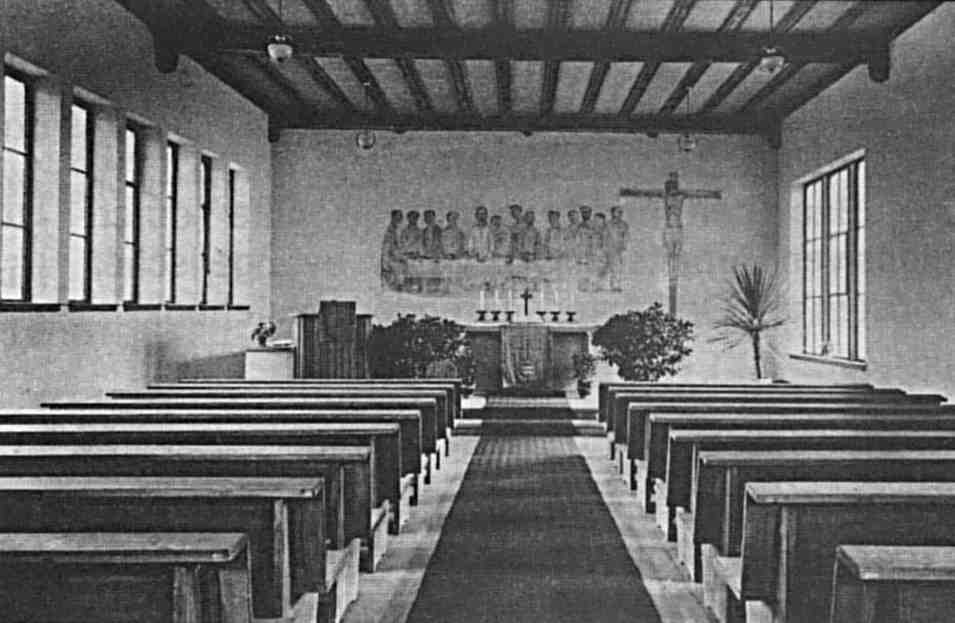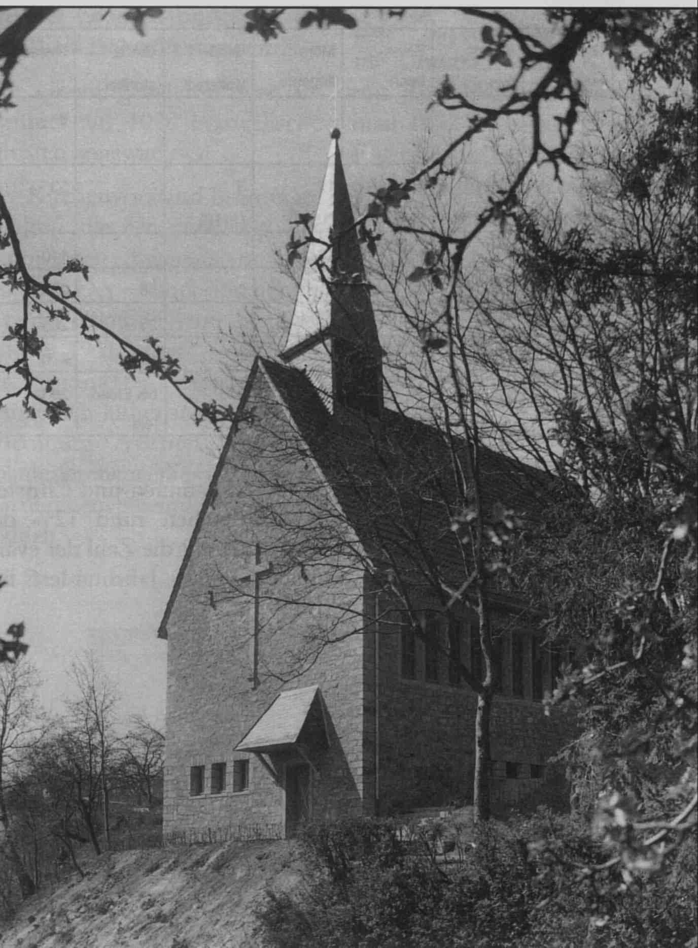 Ab 4. August 1940 finden die Gottesdienste in der „Wendelinuskapelle“ am Neuen Weg statt, die die kath. Kirchengemeinde mit Genehmigung des bischöflichen Ordinariats zur Verfügung stellte. Wie Gisela Otto, die jüngere Tochter unseres Pfarrers Wilhelm Otto, in der Festschrift von 1981 schreibt, waren die Gottesdienste in der Wendelinus-Kapelle mit Schwierigkeiten verbunden: „Die Wendelinus-Kapelle bietet nur etwa 20 Gemeindegliedern Platz. Viele Gottesdienstbesucher stehen während der gottesdienstlichen Feiern außerhalb der Kapelle und spannen bei Regen und Schnee den Schirm auf. In der Kapelle ist es im Winter trotz eines kleinen Ofens eisig kalt. Rattern Autos vorbei, sind die Worte des Pfarrers nicht immer zu verstehen.“ 2)