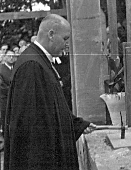 Bereits am 16.9.1950 erfolgt der 1. Spatenstich und am 8.10.1950 die Grundsteinlegung.