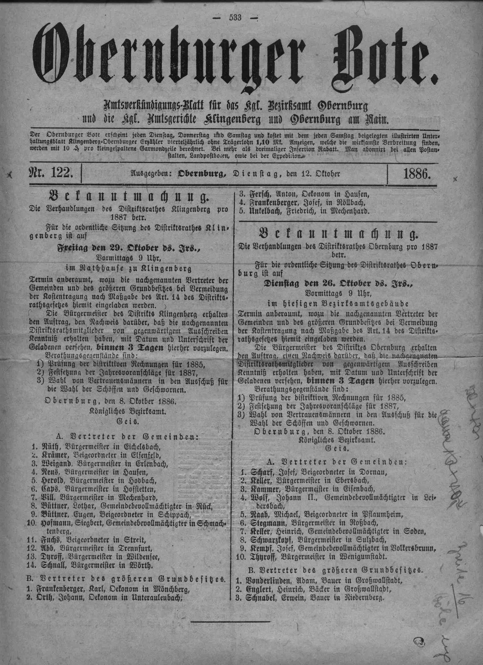 Heinrich Bingemer leitete von 1919-1928 nicht nur die Obernburger Feuerwehr als Kommandant. Als Bezirksbrandinspektor wurde er zu einem Pionier des modernen Feuerlöschwesens und als Kreisbrandinspektor rief er die "Unterfränkische Kreisfeuerwehrzeitung" ins Leben. Neben der Feuerwehr war er besonders dem Sport verbunden. Seine Geselligkeit und sein Humor ließen ihn aber auch zu einem verdienstvollen Förderer des gesamten Vereinswesens Obernburgs werden.
