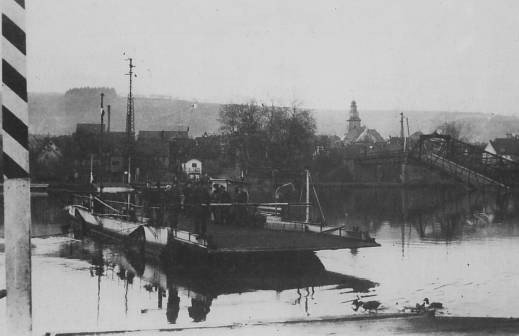 Sou hat geännert sich des Bild, Die Schteg seun abgerisse, Vergesse is des "Ferry"-Schild Kaan Mensch dut des vermisse. De "Jupp" sitzt uff de Bricke druff, Dut Schportchen brav verkaafe. De "Pitt" mecht in die Glanzstoff nuff, Schtatt fahrn, muß er jetzt laafe.