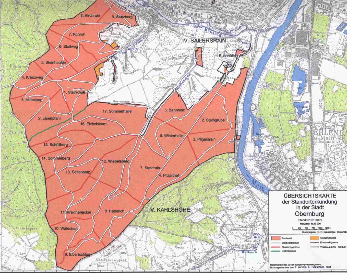 Obernburger Flurnamen In städtischen Bekanntmachungen oder Sitzungsprotokollen kann man des Öfteren solche oder ähnliche Texte lesen: “Der Bebauungsplan für das Gebiet (z.B.) Mühlrain liegt zur Einsicht im Rathaus auf.“ Oder: "In der Gemarkung Winterhalle kann Brennholz ersteigert werden." Es gibt sicher viele Obernburger, die zumindest häufig genannte Fluren richtig einordnen können, aber wir glauben auch, dass mindestens ebenso viele - vor allem Neubürger - mit Obernburger Flurnamen nur wenig anfangen können. Und mit der Deutung der Flurnamen dürfte es eher noch schlechter bestellt sein.