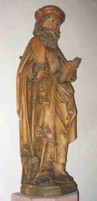 Auch die Obernburger Figur hat ein Tier neben sich, in dem man ein Schwein sehen könnte - vielleicht ist es aber auch ein Hund, und dann wären wir bei einem anderen Heiligen, nämlich Rochus. Sein Leben liegt noch viel mehr im Dunkeln als das des heiligen Antonius und in viel höherem Maße mischen sich Wahrheit und fromme Erfindung. Das ist nicht erstaunlich, denn Rochus war zwischen dem Ende des Mittelalters und dem 19. Jahrhundert einer der am meisten verehrten Heiligen überhaupt.