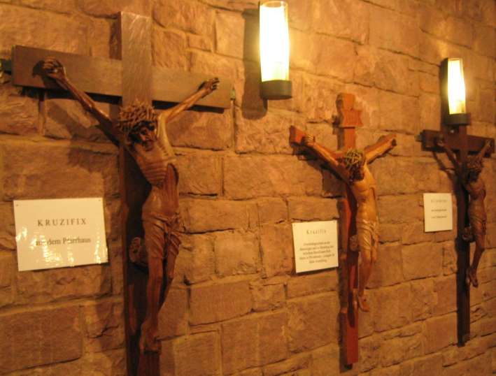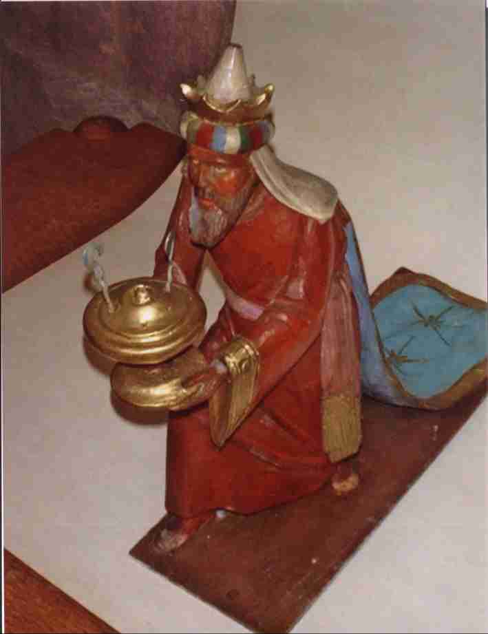 In der gesamten Anlage sind übrigens 88 Einzelfiguren zu sehen, die einer gesonderten Holzwurmbehandlung in Frankfurt unterzogen wurden. Auch der Zustand der Schnitzereien ließ sehr zu wünschen übrig. In mühevoller Kleinarbeit haben wir abgebrochene Teile ergänzt und die Figuren auch farblich wieder in den ursprünglichen Zustand versetzt.