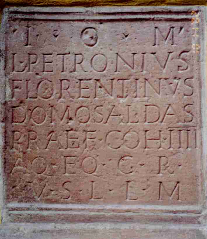 Welche Gottheiten rief aber der kranke Präfekt selbst an? Seine Inschrift ist viel kürzer und er dankt nur einem einzigen Gott: Jupiter, dem Größten und Besten. Das wirkt römisch und außerdem wesentlich ruhiger, gefasster als die Reaktion des Arztes, der vorsorglich alle möglichen Gottheiten um Hilfe gebeten hatte. Und vielleicht erklärt diese Inschrift auch die nachträgliche Hinzufügung des "IOM" auf dem von Zosimus gesetzten Stein: Eventuell wollte man auf diese Weise die beiden Steine als zusammengehörend kennzeichnen. Obwohl der Florentinus-Stein den Grund des Gelübdes nicht nennt, wird mit Recht in der Literatur davon ausgegangen, dass es sich um dieselbe Sache handelt, die auch der Zosimus-Stein erwähnt: Das Setzen eines solchen Steines war etwas Besonderes und Seltenes und kam im Leben ein und desselben Mannes kaum mehrmals vor.